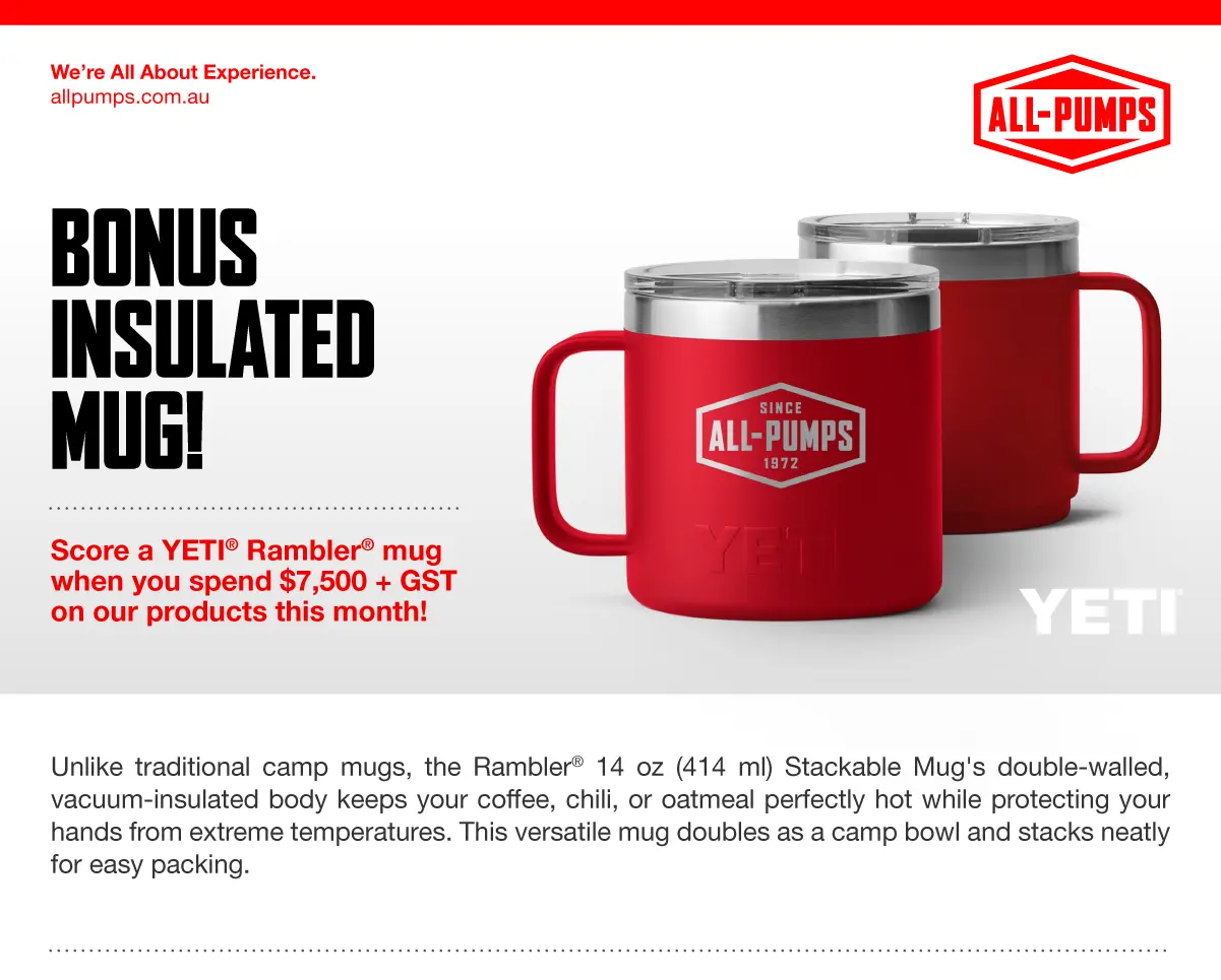 All-Pumps exclusive! Earn a FREE Yeti Tumbler, Solo Stove, or OzTrail chair. Find top-tier pumps, Yeti drinkware, & camping gear. Shop now!