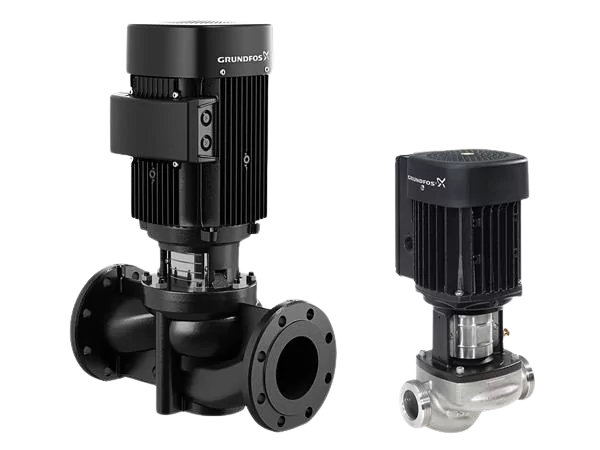 Grundfos inline single-stage pumps are centrifugal pumps where the impeller rotates to move fluid through a closed system. Initially, the pump casing is filled with the liquid. The motor-driven impeller then rotates, forcing the liquid to flow to the volute and into the discharge.