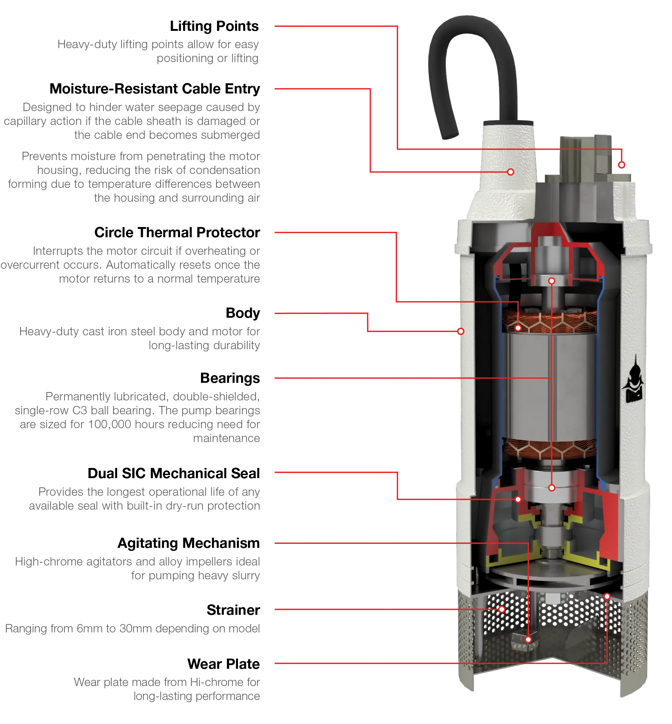 From a moisture-resistant cable entry to dual mechanical seals, a cast iron body, and circle thermal protector, ORCA Pumps are built for reliability and durability.