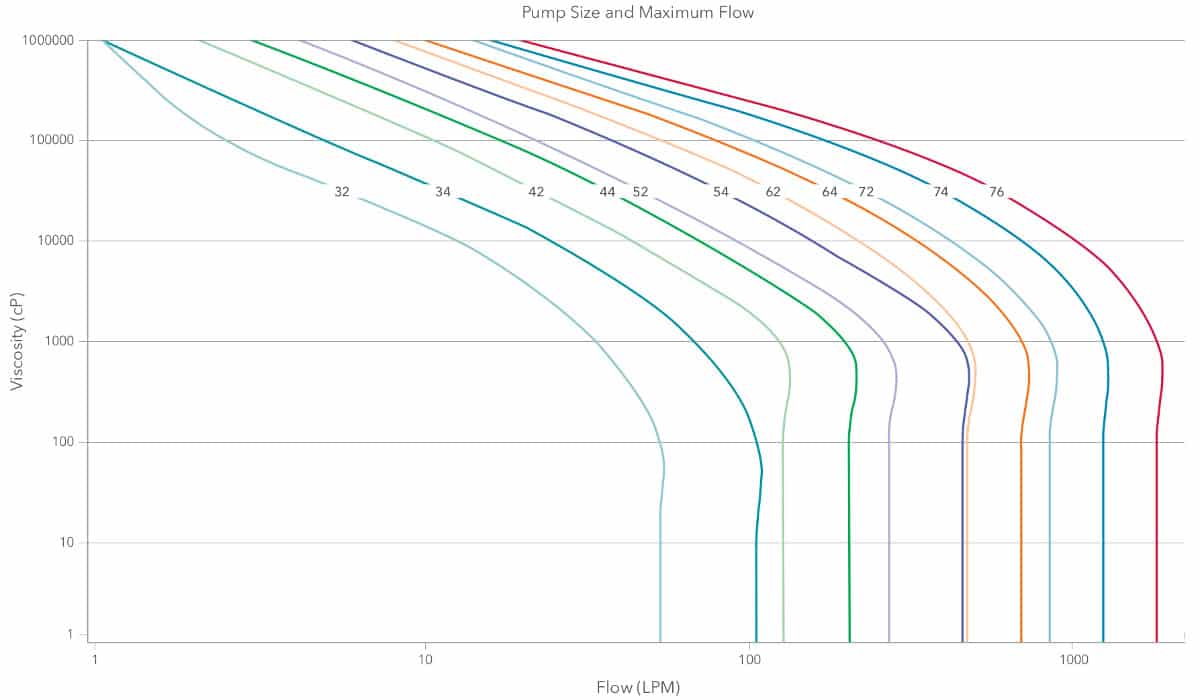 This is an approximate selection guide only. Full details of flow, pressure, viscosity and suction conditions are required to enable exact selection.
